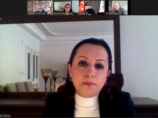 Pandemi süreci ve iklim kriziyle birlikte dünyanın son derece hareketli bir dönemden geçtiğini kaydeden Prof. Dr. Güven Sak, AB Yeşil Mutabakatı’na dikkat çekti. Güven Sak, “Artık ortak davranmak gereken bir dönemin içerisindeyiz. AB’nin şu anda sınırda karbon düzenlemesi nedeniyle Türkiye’den ithal edilecek ürünleri de içeren bir ek vergi uygulaması yakında gündeme gelecek. Sektörlere baktığımızda enerji yoğun sektörler. Tabi bu konuda hepimizin aynı adaptasyon kabiliyeti olmayabilir. Burada hiç kimsenin geride kalmamasını sağlayacak tedbirlerin tasarlanıyor olması lazım. Mesela Avrupa Birliği’nde bunun hepsinin bütçeleri var. Geride kalanların nasıl destekleneceği belli. Dolayısıyla bu sürecin farkında olmamız gerekiyor. Yeşil dönüşüm sürecine uyumu gerçekleştirmek için önümüzdeki 5 yıl boyunca hazırlık yapıyor olmamız lazım. Hangi imkanlardan hangi şirketler, ne tür projelerle yararlanabilir diye hazırlıklar yapmak gerekiyor” diye konuştu.