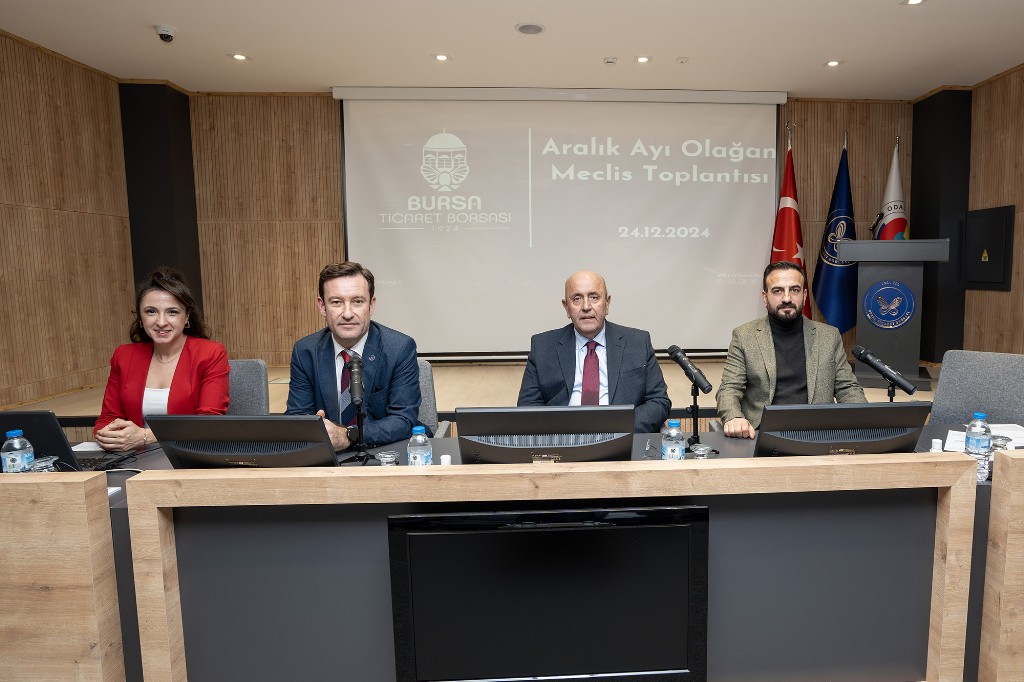 Bursa Ticaret Borsası (Bursa TB), Aralık ayı olağan Meclis toplantısı Doğanbey’de bulunan hizmet binasında yapıldı. Meclis Başkanı Mehmet Aydın başkanlığında, Bursa TB Yönetim Kurulu Başkanı Özer Matlı ve Meclis Üyelerinin yer aldığı yılın son meclis toplantısında, 2024 yılındaki proje ve faaliyetler ile yeni yılda hedeflenen çalışmalar değerlendirildi.