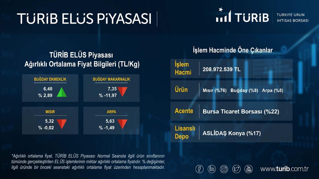 Başkan Özer Matlı, yetkili acentesi ve A Grubu büyük hissedarları arasında yer aldıkları Türkiye Ürün İhtisas Borsası (TÜRİB) Elektronik Ürün Senetleri (ELÜS) Piyasası’ndaki tescil işlem hacmi performansını da değerlendirdi. TÜRİB ELÜS Piyasası’nda 2023 yılının ilk 6 ayında Bursa TB acente kaydında, alım-satım olmak üzere 341 işlemin gerçekleştiğini kaydeden Başkan Özer Matlı, “Ülkemizin dört bir yanındaki alıcı ve satıcıları tek bir merkezi platformda toplayan TÜRİB ELÜS Piyasası’nda Borsamız, 2022 yılının aynı dönemine göre işlem hacmini yüzde 78 artışla 780 milyon 911 bin liraya yükseltirken, en çok işlem gerçekleştirilen ürünler ise mısır, buğday, arpa ve zeytin olmuştur” diye konuştu. TÜRİB sisteminin yaygınlaştırılmasına yönelik çalışmalara devam ettiklerini kaydeden Başkan Matlı, Bursa TB acente kaydındaki üye sayısını geçen yılın Ocak-Haziran dönemine kıyasla yüzde 25 artırdıklarını da vurguladı.