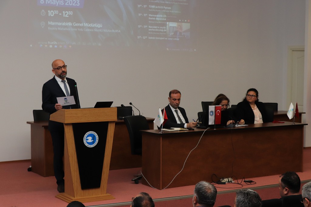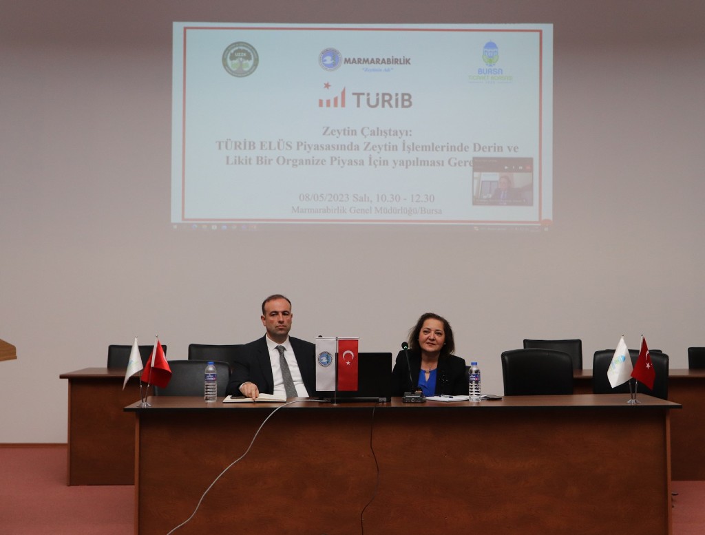 Türkiye Ürün İhtisas Borsası (TÜRİB) sisteminin geniş kitlelere duyurulması ve yaygınlaştırılmasının yanı sıra kentin en önemli tarım ürünlerinin başında gelen zeytin ve zeytinyağının katma değerini artırmak amacıyla çalışmalar yürüten Bursa Ticaret Borsası (Bursa TB), TÜRİB, Marmarabirlik ve Ulusal Zeytin ve Zeytinyağı Konseyi (UZZK) iş birliğinde çalıştay düzenledi. “TÜRİB ELÜS Piyasasında Zeytin İşlemlerinde Derin ve Likit Bir Organize Piyasa İçin Yapılması Gerekenler” konulu çalıştaya, Bursa TB Yönetim Kurulu Üyesi Emrah Silmez, Bursa TB Meclis Üyesi Namık Turan, Marmarabirlik Yönetim Kurulu Başkanı Hidamet Asa, TÜRİB Genel Müdür Yardımcısı Necla Küçükçolak, Marmarabirlik LİDAŞ Yönetim Kurulu Başkanı Mehmet Ertaş, Nanolab Laboratuvarlar Grubu Şube Müdürü Melike Akanaras ile ziraat odası başkanları, çiftçiler, yatırımcılar, lisanslı depo temsilcileri katılırken, Ulusal Zeytin ve Zeytinyağı Konseyi Başkanı Dr. Mustafa Tan ve TÜRİB Genel Müdürü Ali Kırali çalıştaya çevrimiçi bağlandı.