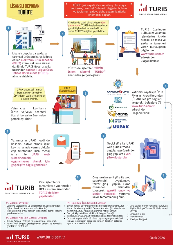 Bu nedenle, ELÜS alım – satımı yapmak isteyen yatırımcıların, TÜRİB’e kayıt için aşağıda yer alan tüm bilgi ve belgelerle birlikte Bursa Ticaret Borsası’na başvurmaları önemle duyurulur. Yatırımcılar, TÜRİB sistemindeki bilgilerini güncellemek istediklerinde söz konusu değişiklikleri Borsamız vasıtasıyla yapabilecektir.